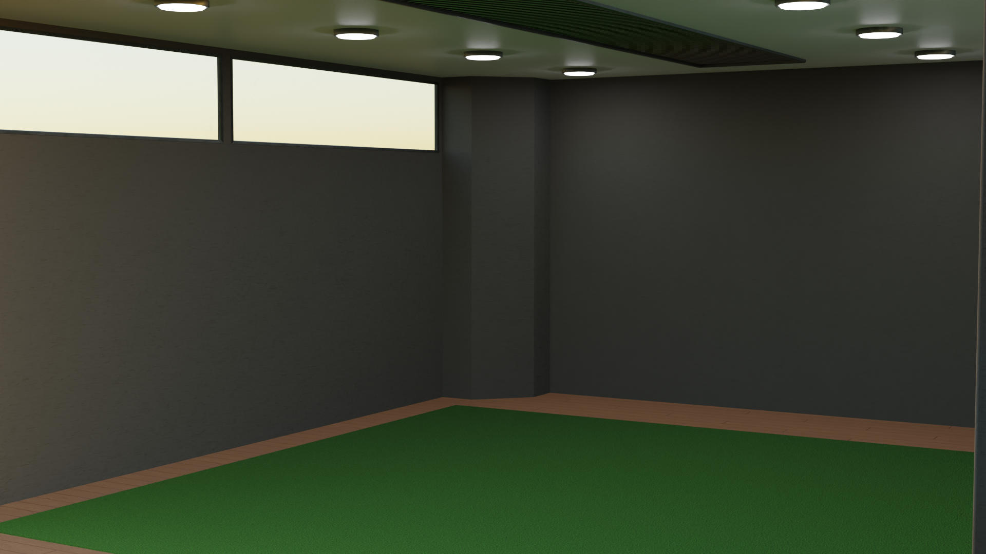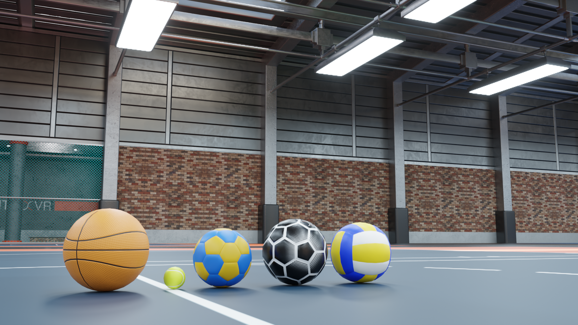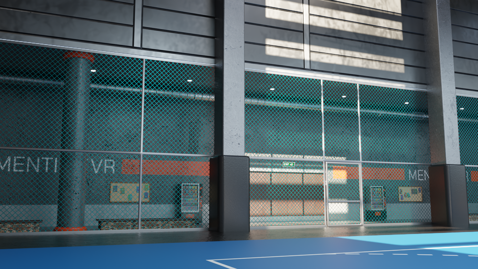 This was my last assignment as part of the Mentis VR team. I fully designed and modeled the environment following the specifications of the leadership team. The space had to be enclosed and large enough to fit several courts from a variety of sports, including a full football field. I gave the space a "converted warehouse" aesthetic and I added a few skylights to bring in some natural light to avoid the space feeling claustrophobic. Unfortunately I was unable to complete its implementation from Blender to Unity.