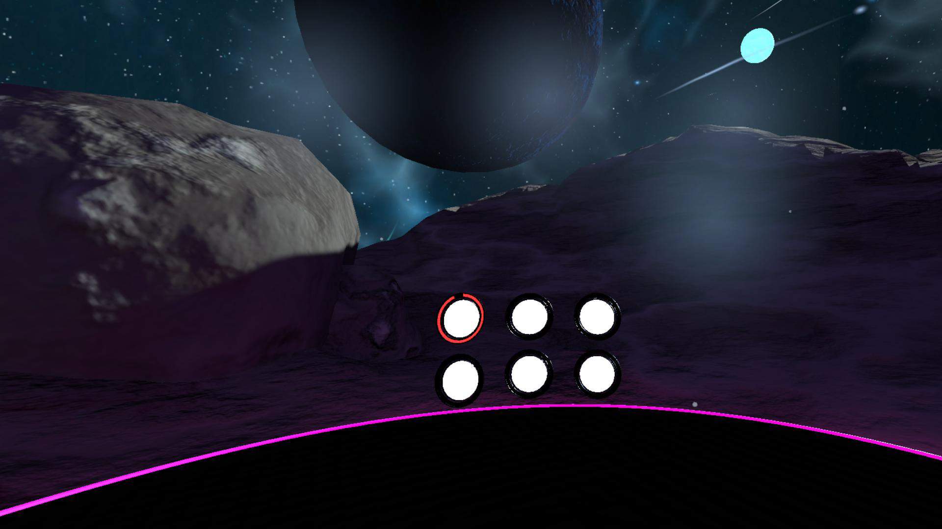 Using my previous experience with VR and Unity's UI systems, I designed and implemented, with the help of the programming team, a clean and aliasing-free UI system that was legible and soothing to use in VR. I even recorded and edited gameplay tutorial videos to guide players through the various game modes and scenarios.