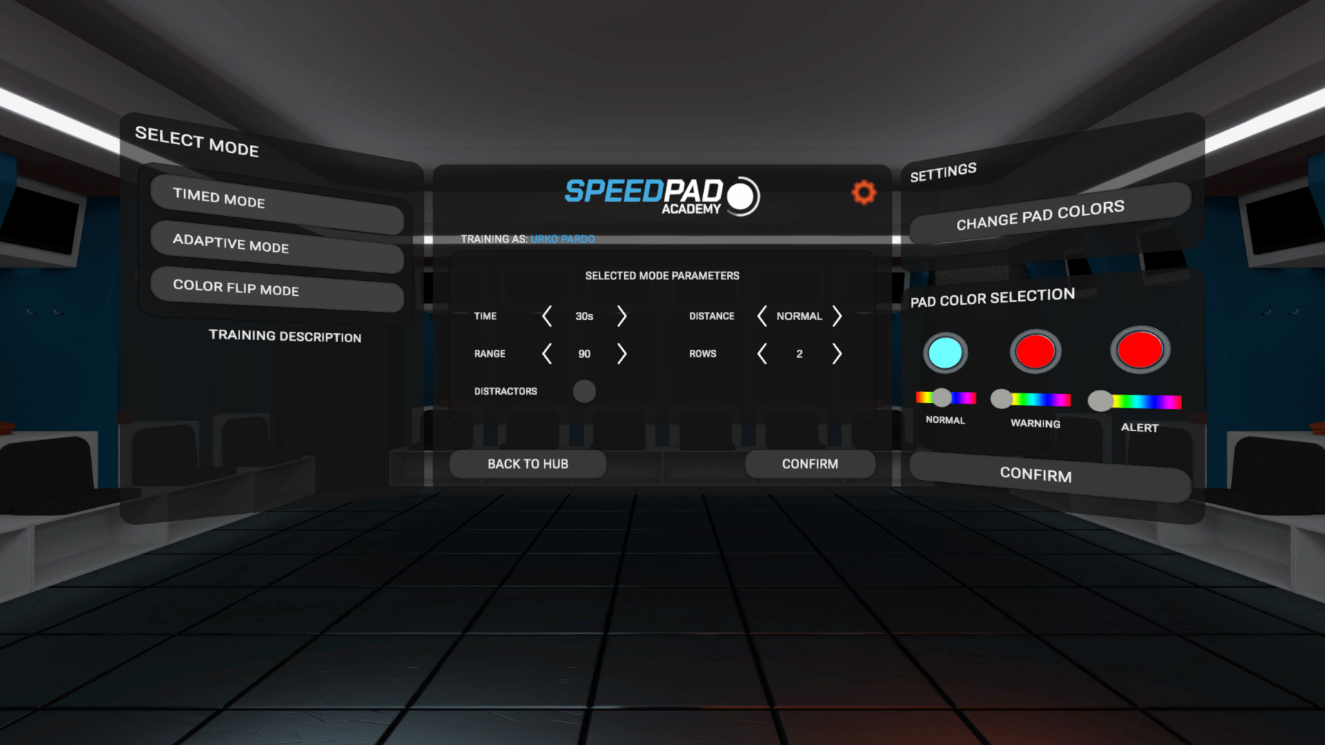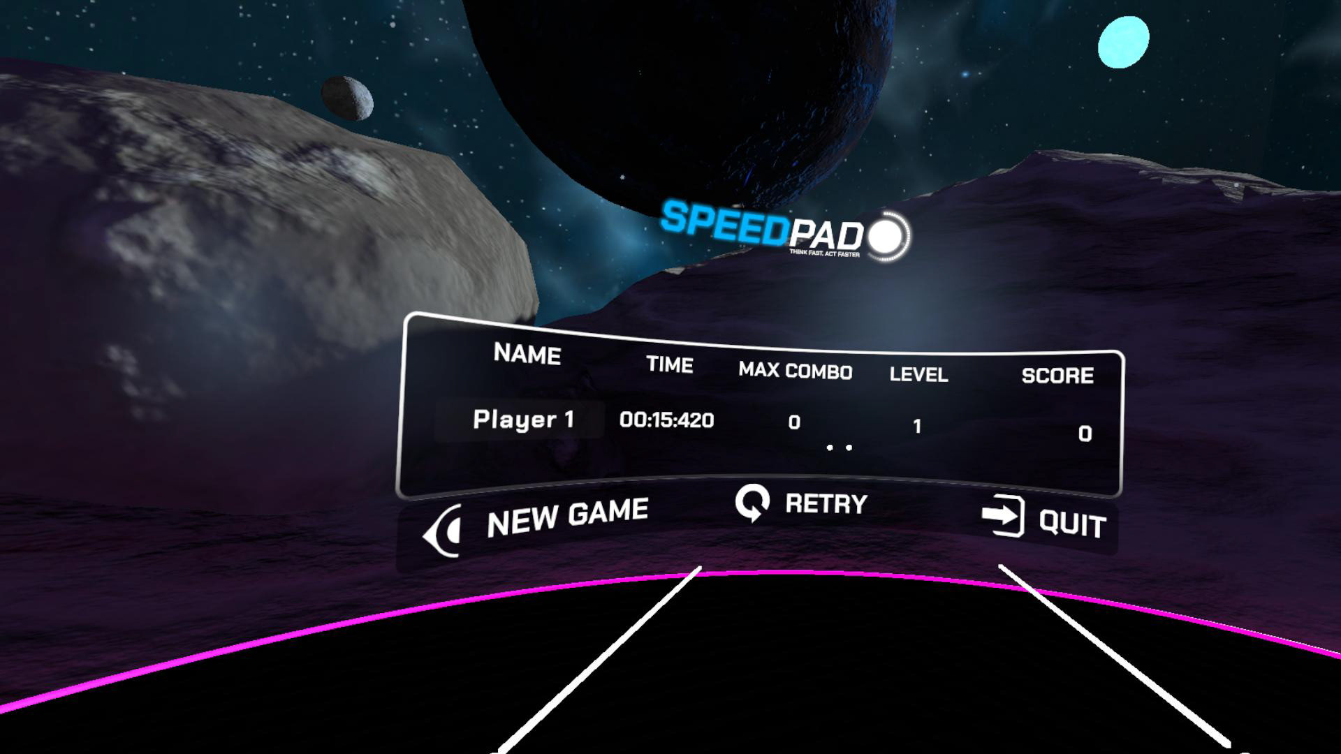SpeedPad was an old project created by other artists in the company for the original Meta Quest. I was tasked to updating the project by creating a new logo, new graphics and designing new gameplay modes.