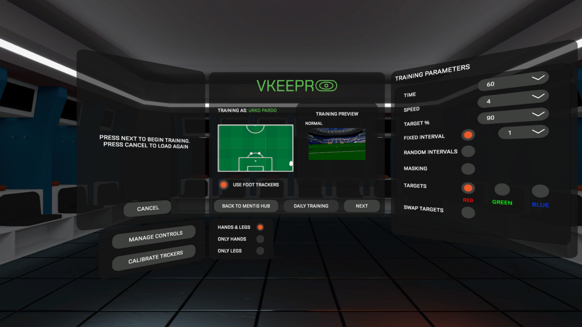 This project is currently on the Meta Quest store as part of Mentis VR's B2B service for professional football clubs. The project combines all apps above, including a new mode, Academy, that incorporates all elements of the apps to generate a fitness quotient to help coaches gauge the abilities of their athletes. In this project I completely reworked the UI in all the apps to have a uniform art style, as well as implemented a Rec Center environment for multiple sports.